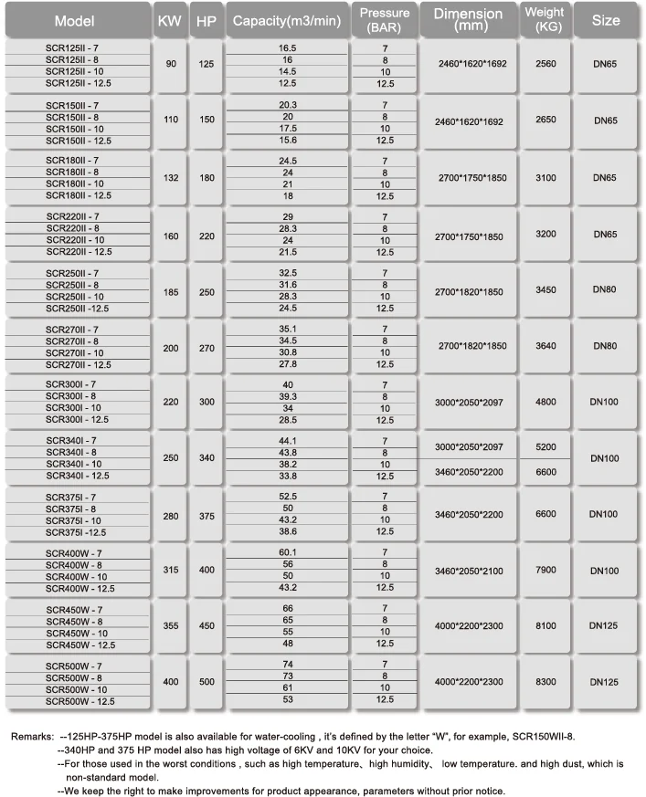 air pressure, full use of the heat dissipation area, and an excellent cooling effect. Conquer the problem of big horsepower air cooling type compressors’ poor cooling effect problems.